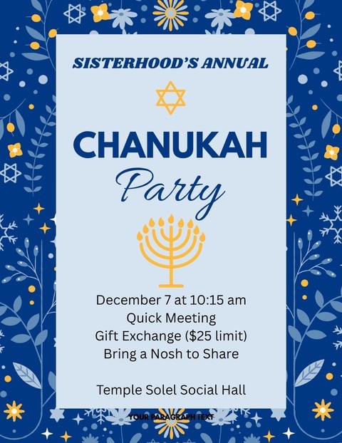 At Temple Solel, we are committed to making our services accessible to everyone by offering them both in person and virtually. Whether you join us on in–person or from your home, we want you to feel connected to our congregation and community of worshipers.
